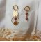 En spenne med 2 rosa natursteinsperler montert på en stor ringformet ørestikker i rustfritt stål.