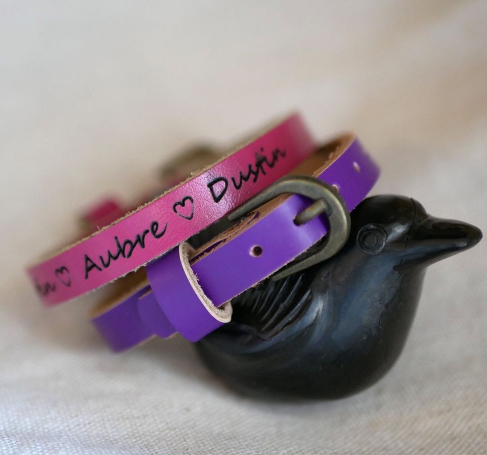 Lærarmbånd for kvinner, menn, tenåringer eller barn, som skal tilpasses med et fornavn eller et kort sitat som vil bli gravert i læret.