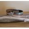 En mansjett med sammenflettet skinn dekorert med en sølvfarget metallskilpadde i midten: du kan komponere armbåndet ditt ved å velge skinnfarger. Innsiden av armbåndet kan graveres med en hemmelig melding (på den 10 mm brede blonder). Bredden på armbåndet er 20 mm, med en 10 mm blonder og 2 5 mm blonder (som du kan velge i samme farge). Armbåndet er laget etter mål for håndleddet ditt og lukkes med en magnetlås laget av europeisk zamack (sterk magnet) og sikkerhetsstang.