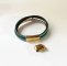 Une manchette femme en cuir aux couleurs turquoise et doré, et composée de 4 lacets en cuir .