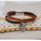 En svært feminin lærmansjett med tre kryssende lærbånd: vintage brunt skinn, mokkaskinn og oransje skinn. De tre lærene er forbundet med det sentrale anhenget: en Livets tre-sjarm eller et utvalg på 30, og en matchende rund perle.
