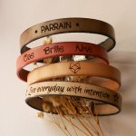 Det flate lærarmbåndet er 10 mm bredt, europeisk opprinnelse, og vikles 3 ganger rundt håndleddet, med en kroklås i rustfritt stål som har fordelen av å være lett justerbar. Det er enkelt å åpne en del av låsen for å kutte av overflødig lær og dermed justere armbåndet perfekt og definitivt til håndleddet ditt. Som standard er armbåndet tilpasset et 19 cm håndledd: så for et mindre håndledd vil du enkelt kunne tilpasse armbåndet ditt. Eller spesifiser størrelsen på håndleddet ditt slik at jeg kan lage et tilpasset armbånd til deg. Velg fargen på læret du liker. Velg om du vil ha en gravering og i så fall plasseringen (på utsiden og / eller innsiden av armbåndet eller på hver side, med et spesifikt design), og angi deretter meldingen som skal graveres med valg av skrift. Gravering av små symboler er mulig som et hjerte, uendelighetstegnet, en musikknote, en stjerne ... (skal angis i parentes i teksten som skal graveres). Jo mørkere fargen på læret er, jo mer diskret er graveringen.For gravering av et fornavn (eller liten tekst) på hver av de 3 rundene, er det nødvendig å spesifisere det i kommentaren til bestillingen (hvis du vet størrelsen på håndleddet, spesifiser det også for en perfekt sentrering). Velg også gaveinnpakning, for et armbånd klar til å tilby.