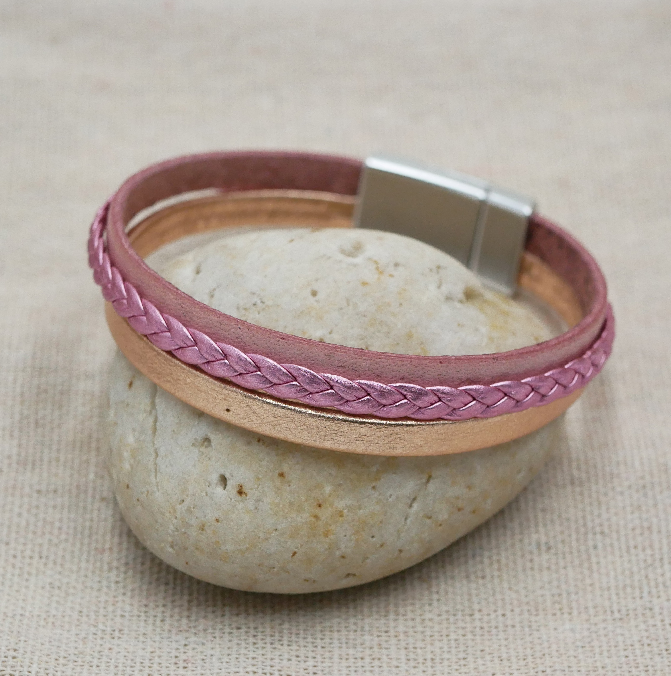 En mansjett med tre lær i svært feminine farger og et lær som kan tilpasses ved gravering.