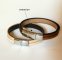 Herrearmbånd med flettet metall midtstykke på en duo av fawnfarget skinn fôret med mørkebrunt skinn.