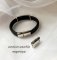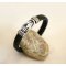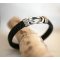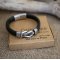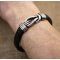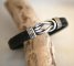Keltisk stil for dette svarte flettede lærarmbåndet dekorert med en alderen sølv metallbue. Armbåndet er laget for et gjennomsnittlig manns håndledd på 18 cm, for en total lengde på 20,5 cm.