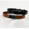 Herrearmbånd i skinn dekorert med 2 firkantede hamrede metalløkker.