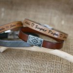Naturlig lærarmbånd for menn gravert med meldingen du ønsker. Ideell til farsdagen, en julegave til en ektemann, gudfar, forlover ... Armbåndet er laget av ekte lær, tykt, 11 mm bredt. Lengde 25 cm. Den lukkes med en sølv beltespenne for en håndleddstørrelse mellom 15 cm og 18,5 cm. Dette unisex-armbåndet kan også brukes av en kvinne. (For et skreddersydd armbånd eller uten å vite håndleddstørrelsen, se dette: