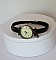 Du kan velge å få inngravert en tekst på eller på innsiden av lærremmen for en personlig gave. Denne korte teksten (ca. 30 tegn) vil bli gravert på låsesiden (med mindre annet ønskes). Urskiven er i alderen bronsefarge. Kvartsbevegelse, i rustfritt stål.